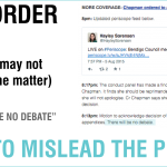 Councillor Chapman was the subject of a Conduct Hearing over a controversial tweet of an alleged FGM photograph to a mosque supporter. It was done on a private phone, through a private twitter account, during private hours. After 11 weeks the conduct panel brought down its findings. It appears that the Bendigo Council has once again attempted to mislead …