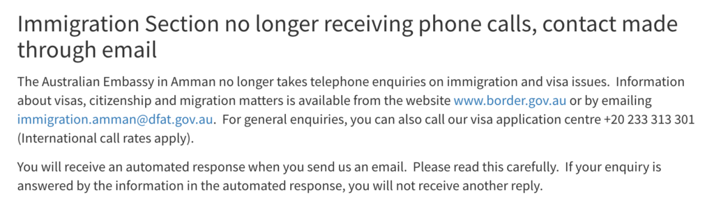 MESSAGED: “My father, mother and brothers they have got approval to come Australia since last September and till now they are waiting for interview to come to Australia. They tried to call the embassy but they don’t respond to them and I send them e-mail and they never respond to me too and My family are living in Jordan as refugees.”