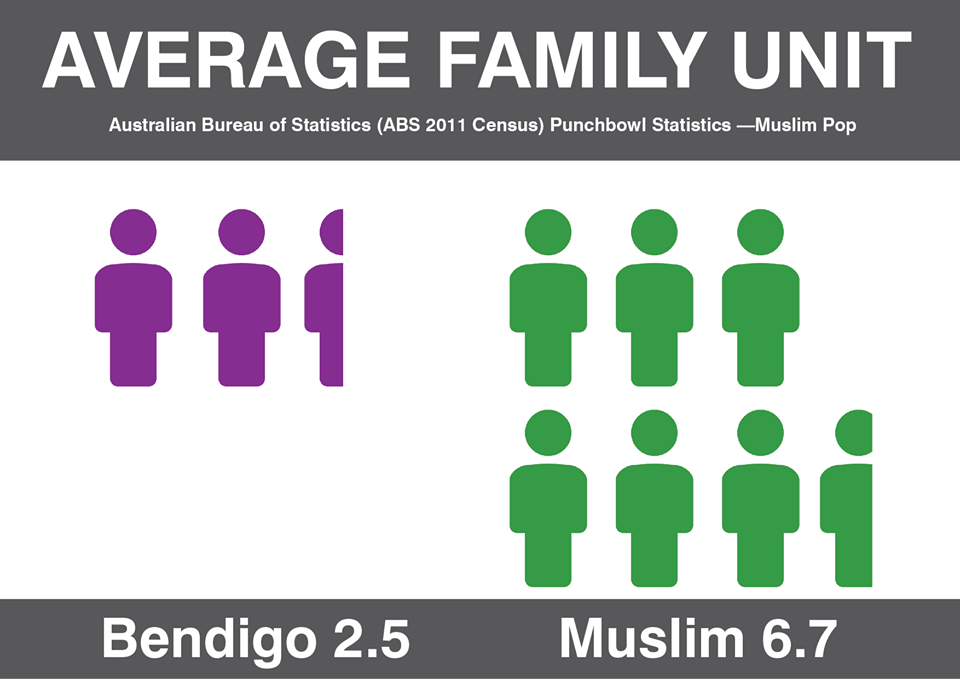 Muslim population in Punchbowl vs non Muslim Bendigo.