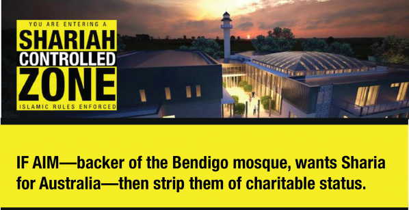 We must further assume that these basic beliefs systems will be brought to Bendigo if this mosque goes ahead. While we may have not stopped the mosque’s advance through VCAT we can certainly remove the tax breaks for any organisations that flout our laws.